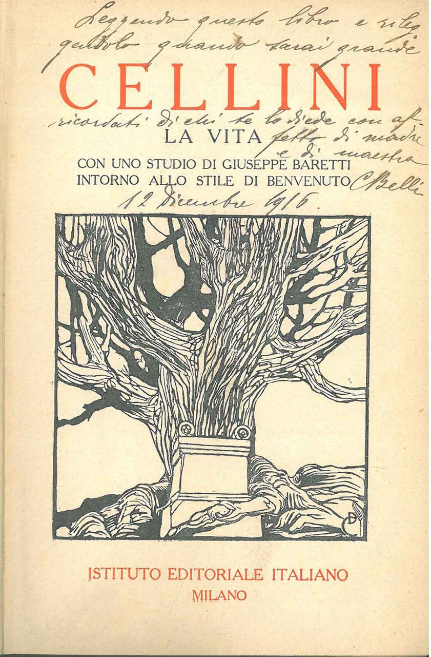 19 cm, ril. in tela, tit. in oro al piatto e dorso, taglio sup. dorato; pp. 450, ritratto di Cellini coperto da velina; una dedica