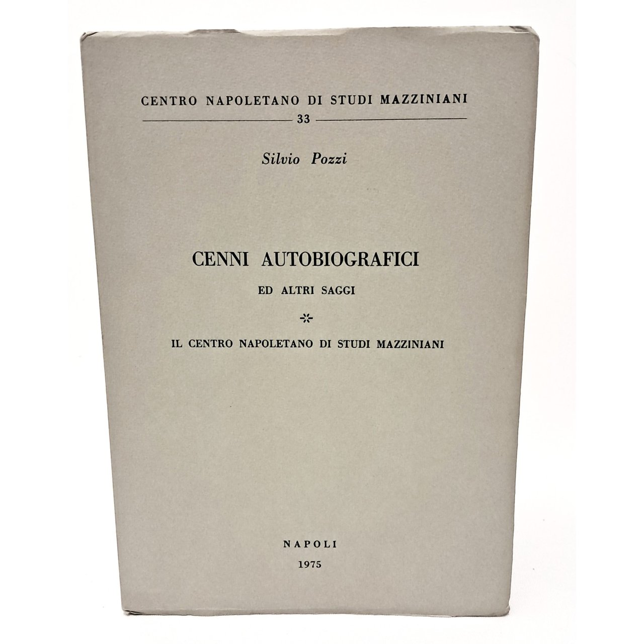 PRIMA EDIZIONE. Pubblicazione edita a cura del Centro Napoletano di Studi Mazziniani numero 35. Presentazione di Cleto Carbonara Cenni biografici di Giuseppe Mazzini, attualità del Mazzini, pensieri di Mazzini, vicissitudini e lotte di un mazziniano (cenni autobiografici di Silvio Pozzi) seguito da una appendice di documenti. In brossura. Pp. 159. Ottime condizioni