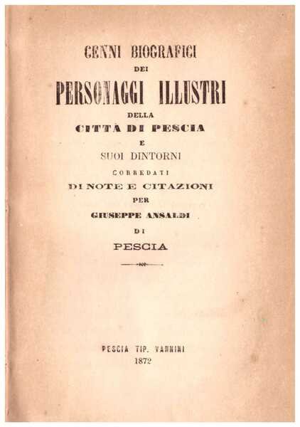 Cenni biografici dei personaggi illustri della Città di Pescia e suoi dintorni. Coredati di note e citazioni