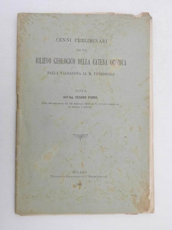 Cenni preliminari ad un rilievo geologico della catena orobica dalla Valsassina al M. Venerocolo