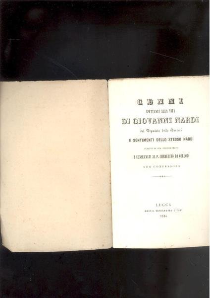 CENNI SPETTANTI ALLA VITA DI GIOVANNI NARDI DEL DEPUTATO DELLE CARCERI E SENTIMENTI DELLO STESSO NARDI SCRITTI DI SUA PROPRIA MANO E CONSEGNATI AL P. CHERUBINO DA COLLODI SUO CONFESSORE