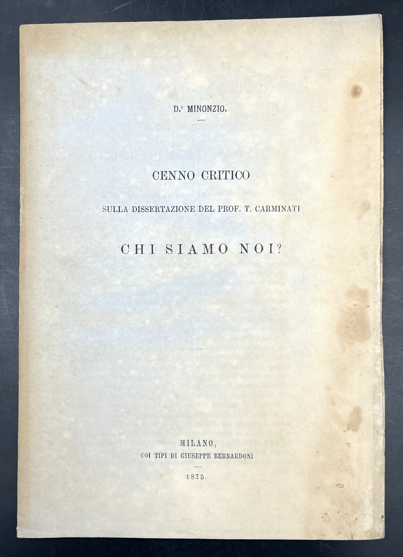 Cenno critico sulla dissertazione del prof. T. CARMINATI "CHI SIAMO NOI?". Lettura fatta nella seduta del 24 giugno 1875., Acc. Fisico-Medico-Statistica.