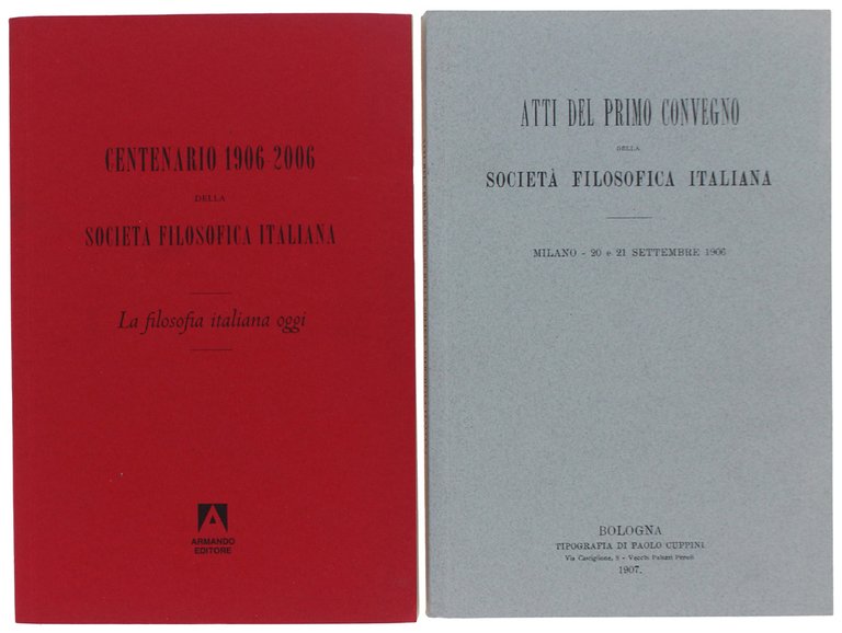 (Codice FS/5716) Due volumi in 8° 212+158 pp. Con la ristampa anastatica degli ATTI DEL PRIMO CONVEGNO.DELLA SOCIETA' FILOSOFICA ITALIANA. Milano 20 e 21 settembre 1906. Allegato DVD. Brossure editoriali, tutto come nuovo. ~~~ SPEDIZIONE IN ITALIA SEMPRE TRACCIATA