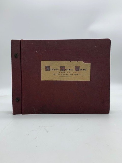 Album cm 27 x 21, con 31 fotografie originali in b/n applicate al recto di ogni foglio con punti metallici. Tutta tela con etichetta della ditta applicata al piatto anteriore. Si allega listino prezzi (pp. 4 dattiloscritte). Catalogo non comune composto da fotografie originali ai sali d'argento raffiguranti ognuna da 3 a otto ceramiche (piatti, vasi, soprammobili ecc.) tutti realizzati nel tipico gusto di questa ceramica umbra. Le Ceramiche artistiche Tadinati nacquero nel 1955 grazie a Giuseppe Panfili, in seguito prese il nome di Ceramiche Tadinate
