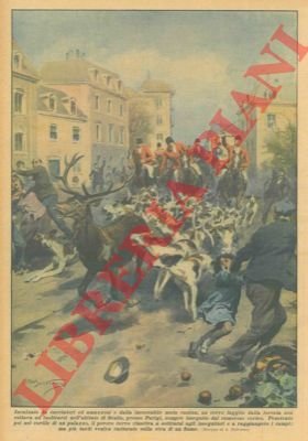 Cervo fuggito dalla foresta entra nell'abitato di Senlis (Parigi) inseguito da una muta canina.
