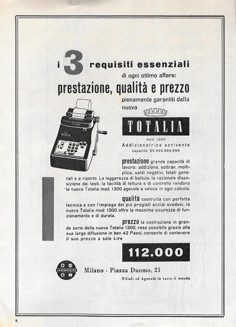 CGE pari qualità in minor ingombro/Totalia Lagomarsino. Advertising 1956