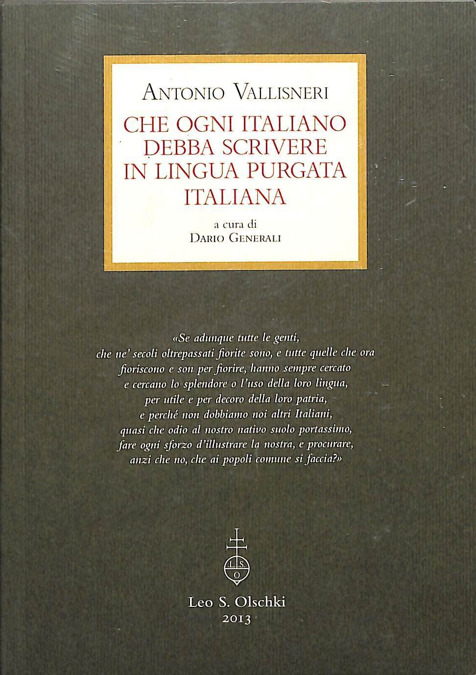 Che ogni italiano debba scrivere in lingua purgata italiana, o toscana, per debito, per giustizia e per decoro della nostra Italia : lettera del sig. N. N. ... al sig. Alessandro Pegolotti, segretario di belle lettere del serenissimo di Guastalla. 83 p. ; 17 cm. 453 - Ba Ottimo (Fine)