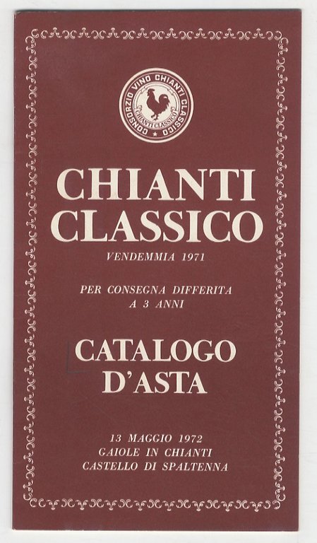 Chianti classico: vendemmia 1971, in botti esistenti nelle cantine delle aziende produttrici che saranno venduti all'asta a cura del Consorzio Vino Chianti Classico.