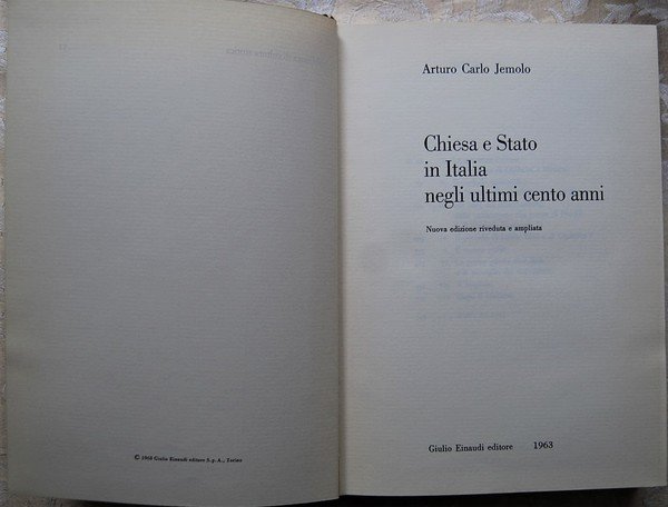 CHIESA E STATO IN ITALIA NEGLI ULTIMI CENTO ANNI.