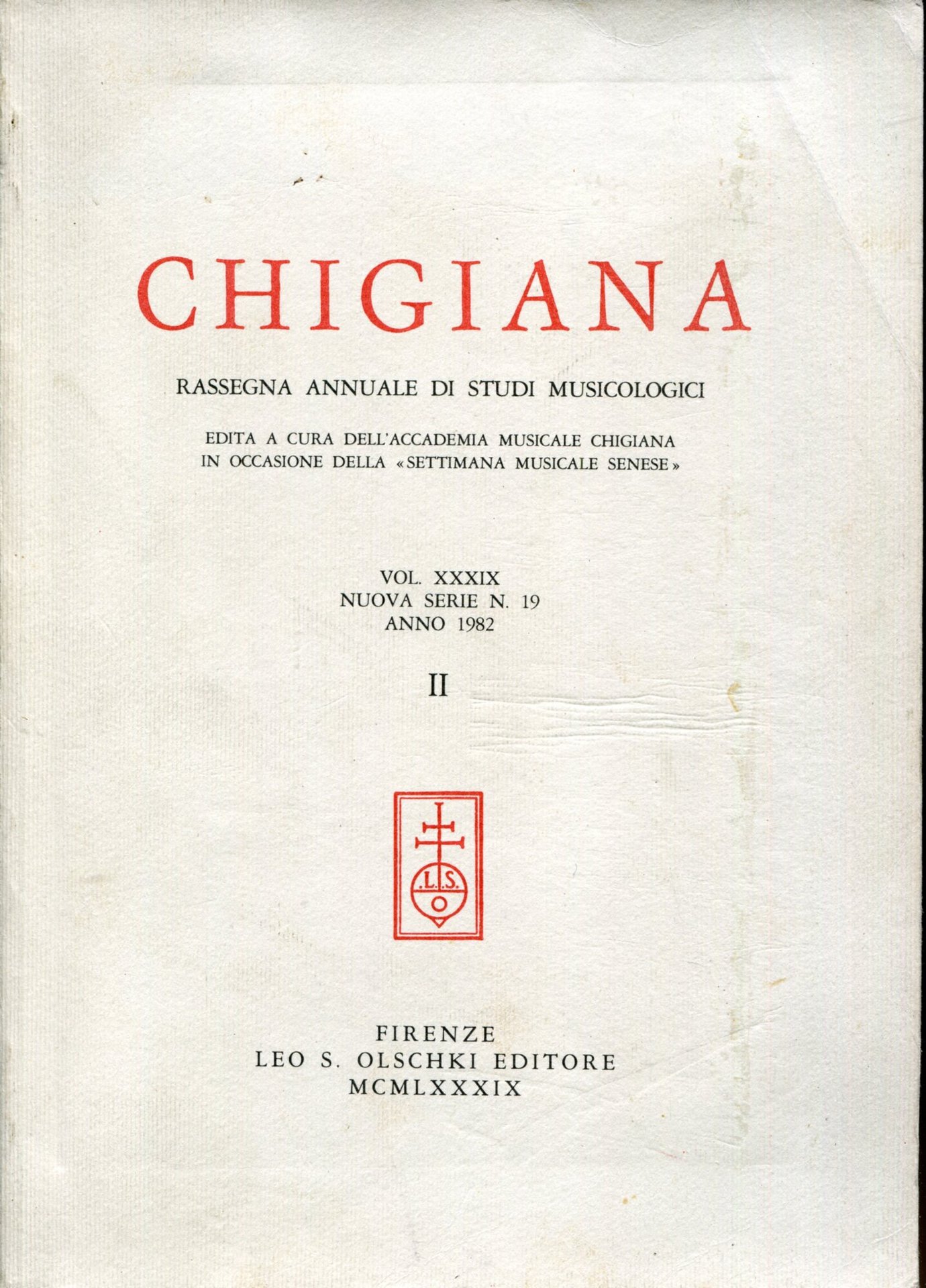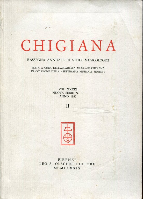 Chigiana. Rassegna annuale di studi musicologici edita a cura dell'Accademia Musicale Chigiana in occasione delle 'Settimane Musicali Senesi', nuova serie n. 19, anno 1982