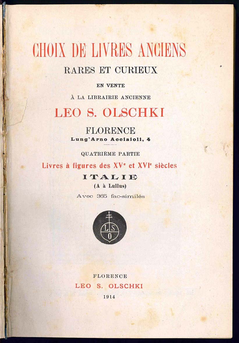 Choix de livres anciens, rares et curieux. Quatrieme partie. Livres à figures des XVeme et XVIeme siecles. Italie (A à Lullus)