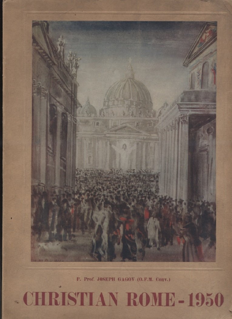 In-4°, pp. ,228, (4), brossura editoriale con illustrazione a colori applicata con una folla di fedeli che affluisce in piazza San Pietro. Tavv. in b.n. f.t. Una dedica manoscritta della curatrice, Simonetta Volpe Macellari, ad Augusta Lange. Ottimo stato. Prima edizione in lingua inglese. Pubblicazione celebrativa dell'anno giubilare 1950.
