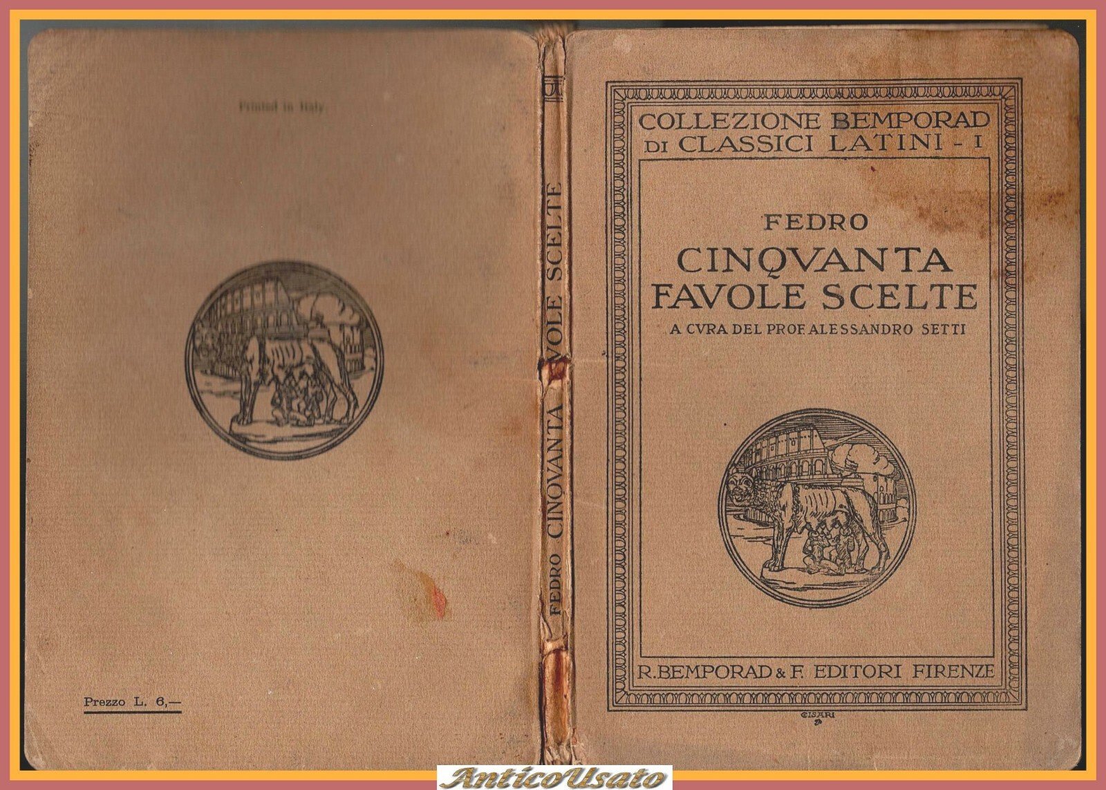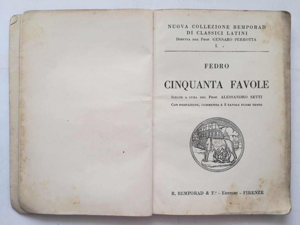 CINQUANTA FAVOLE SCELTE di Fedro a cura Alessandro Setti 1938 Bemporad Libro