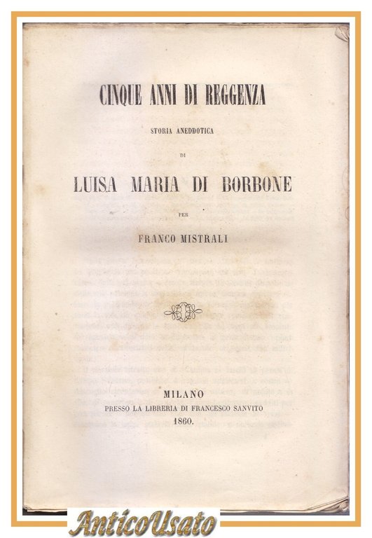 CINQUE ANNI DI REGGENZA storia Luisa Maria Borbone 1860 Mistrali Libro biografia