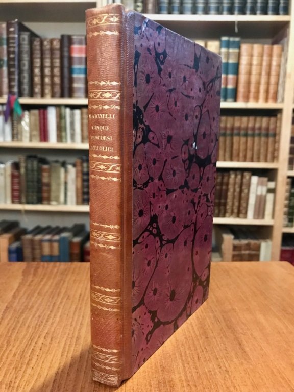 In-8° (cm. 21), legatura coeva in m. pelle con titolo e fregi in oro al dorso, piatti e risguardi marmorizzati; pp. [6] 164 [2] <span style="font-size: 10pt;">in stato impeccabile e freschissime, allegato un foglio sciolto con invio autografo a un nobile letterato. Edizione originale dell'opera di apologia del canonico veronese. Superbo esemplare. (NH5)</span>