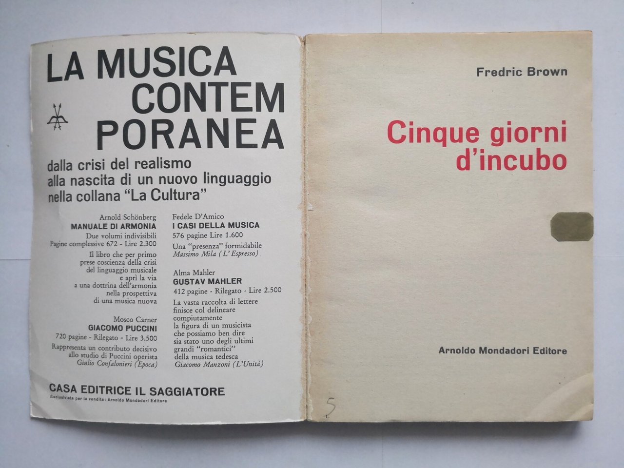 CINQUE GIORNI D'INCUBO di Fredric Brown 1963 Mondadori il giallo libro romanzo