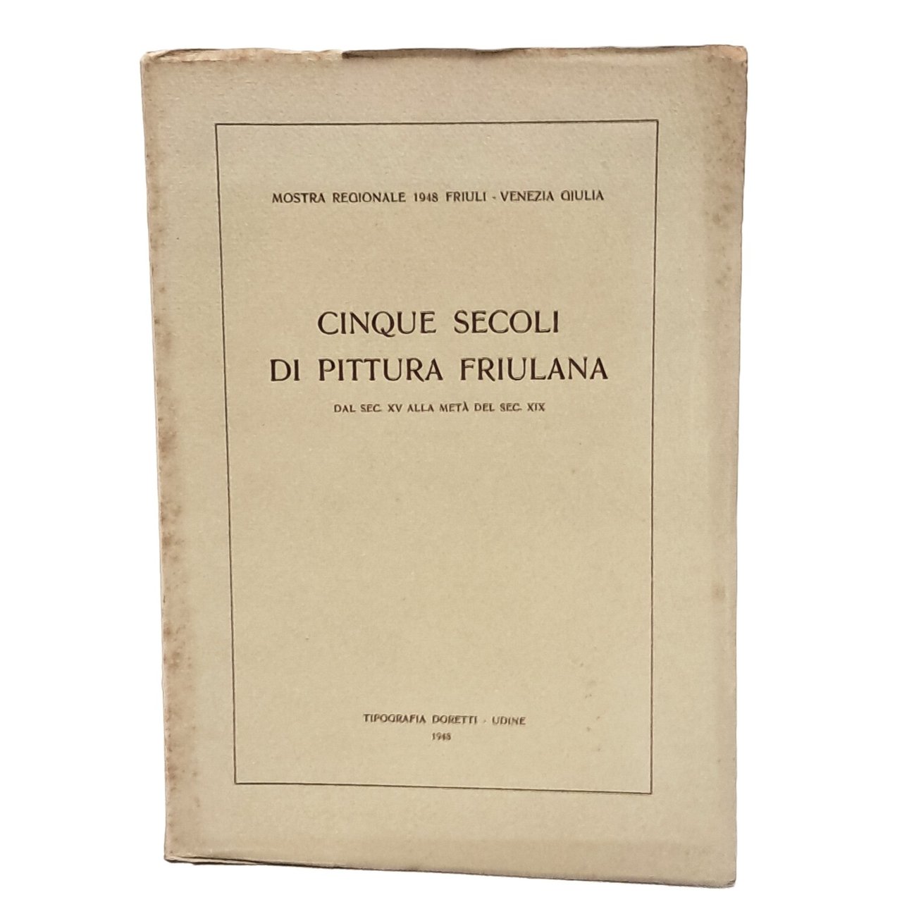 PRIMA EDIZIONE, pubblicazione realizzata in occasione della mostra allestita presso la Loggia del Lionello nell'agosto-settembre 1948 Esposizione realizzata in occasione della Mostra Regionale 1948 con una rassegna di artisti friulani che operarono dai secoli XV sino alla metà del XIX, 44 nomi scelti fra quelli che vennero reputati migliori, ognuno presente con un'opera sola. In bianco e nero. In brossura. Pp. 138. Ottime condizioni.