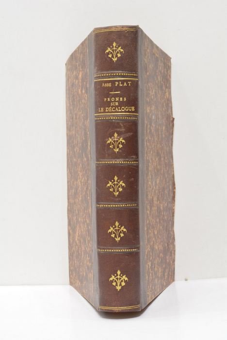 516 pages. 8 feuillets. (20x13cm). Demi-cuir. Dos à nerf orné avec titre et auteur en lettres dorées. Couverture et dos frottés. Déchirures marginales. Coins et coiffes émoussés. Publié à Paris en 1895, cet ouvrage de M. l'abbé Plat se présente comme une collection approfondie de cinquante-deux homélies axées sur le Décalogue, illustrant une pratique religieuse et une interprétation des commandements divins caractéristiques de la fin du XIXe siècle en France. À cette époque, la société française est marquée par des débats intenses sur la place de la religion, en particulier du catholicisme, dans un contexte républicain en pleine consolidation. L'auteur, en s'appuyant sur les textes sacrés, cherche à offrir une guidance morale et spirituelle adaptée aux fidèles de son temps, tout en reflétant les préoccupations éthiques et sociales de son époque. Papier bruni avec taches et rousseurs éparses sans gravité. Sinnon interieur bien conservé.