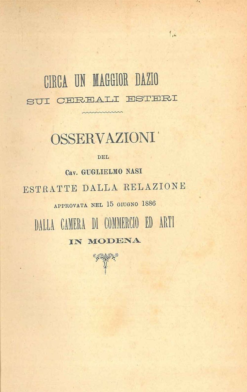 Circa un maggior dazio sui cereali esteri estratte dalla relazione approvata dalla camera di commercio ed arti in Modena