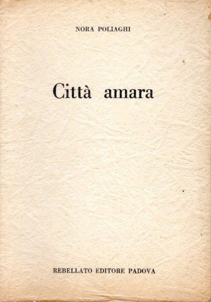 Città amara, prima edizione 1960, pp. 34, formato 12 x 17.<BR>Copertina morbida di colore crema con titoli in nero al piatto anteriore e sul dorso. In prima pagina presente dedica dell'autrice alla scrittrice Minnie Alzona. <BR>Ottime condizioni.
