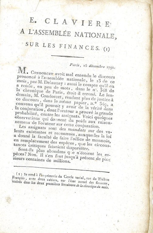 CLAVIERE (E.). E. Claviere à l'Assemblée Nationale, Sur les Finances.