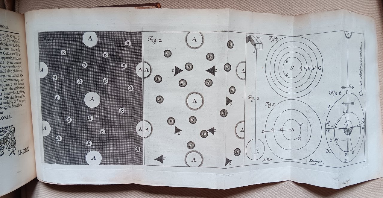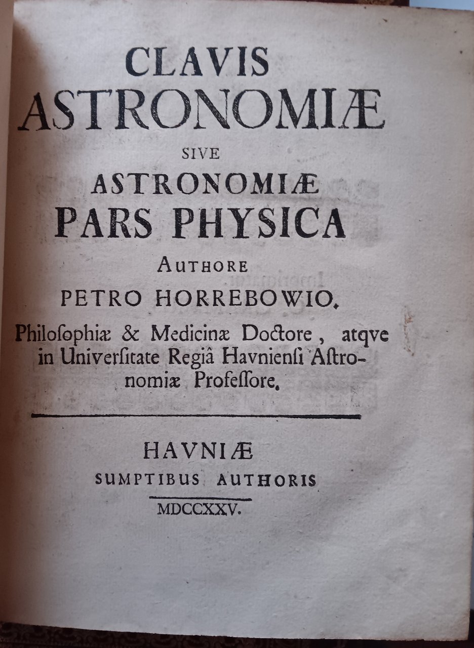 In-4°, pp (12), 112, (12) e 1 tavola ripiegata incisa, dedica a Federico IV; pp (2), 58, e 1 tavola ripiegata incisa. Legatura in vitello coevo, con titolo e fregi in oro al dorso. Entrambe le opere sono in edizione originale. Nel Clavis astronomiae, una delle sue prime opere, Horrebow intende principalmente spiegare la formazione dei pianeti e il loro moto, basandosi sulla teoria dei vortici cartesiani; determina la parallasse del sole e della luna. Nel Copernicus triumphans espone un’altra dimostrazione sulla misurazione dell’annuale parallasse delle stelle fisse, proseguendo le osservazioni cui aveva direttamente assistito, del suo maestro Roemer: qui manifesta con evidenza incontestabile la teoria del moto della Terra. Horrebow (1679-1764) esercitò come astronomo e professore di matematica a Copenhagen, dove fu anche direttore dell’osservatorio astronomico dell’Università. E’ ricordato per aver inventato un metodo per calcolare la latitudine di un luogo dalle stelle; scrisse anche di navigazione e calcolò la parallasse del Sole. DSB pp. 513-14, “He published his results in 1727 in a book with the exultant title of Copernicus triumphans, which was received with great interest in the astronomical world”