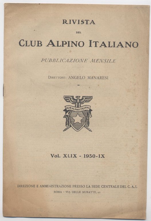 Club alpino italiano Rivista mensile Indici anno 1930