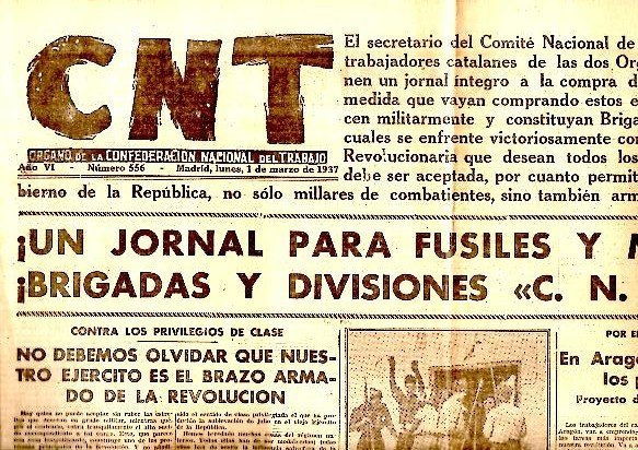 CNT. ORGANO DE LA CONFEDERACION NACIONAL DEL TRABAJO. AÑO VI. N. 556. 1-MARZO-1937.