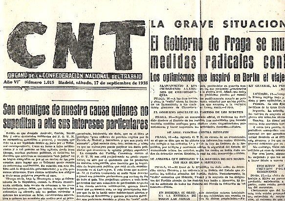 CNT. ORGANO DE LA CONFEDERACION NACIONAL DEL TRABAJO. AÑO VII. N. 1015. 17-SEPTIEMBRE-1938.