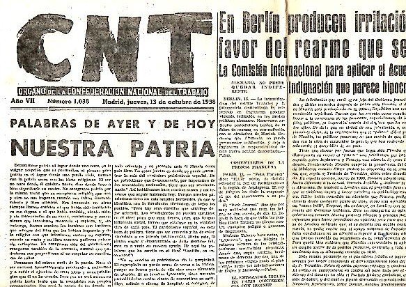 CNT. ORGANO DE LA CONFEDERACION NACIONAL DEL TRABAJO. AÑO VII. N. 1038. 13-OCTUBRE-1938.