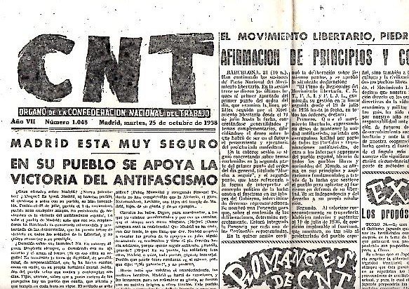 CNT. ORGANO DE LA CONFEDERACION NACIONAL DEL TRABAJO. AÑO VII. N. 1048. 25-OCTUBRE-1938.