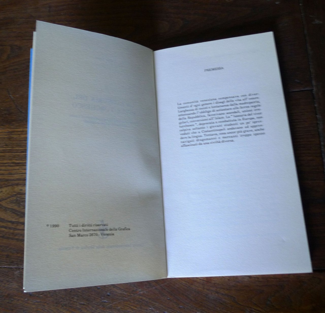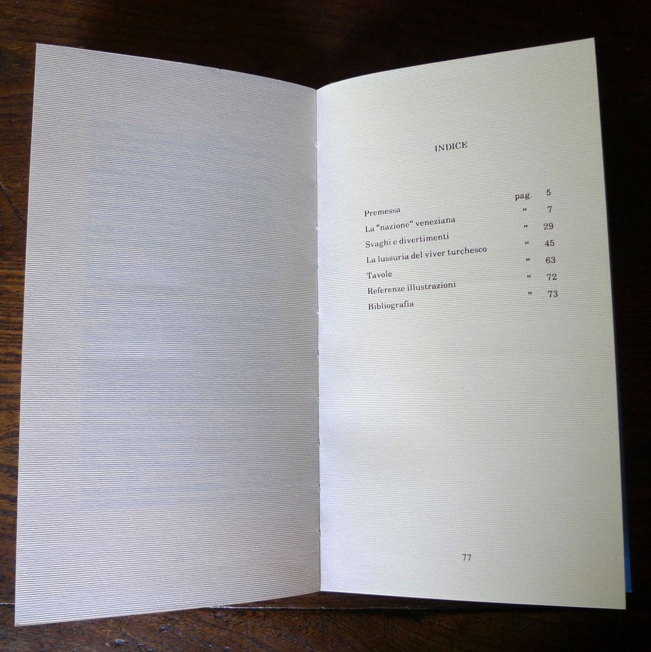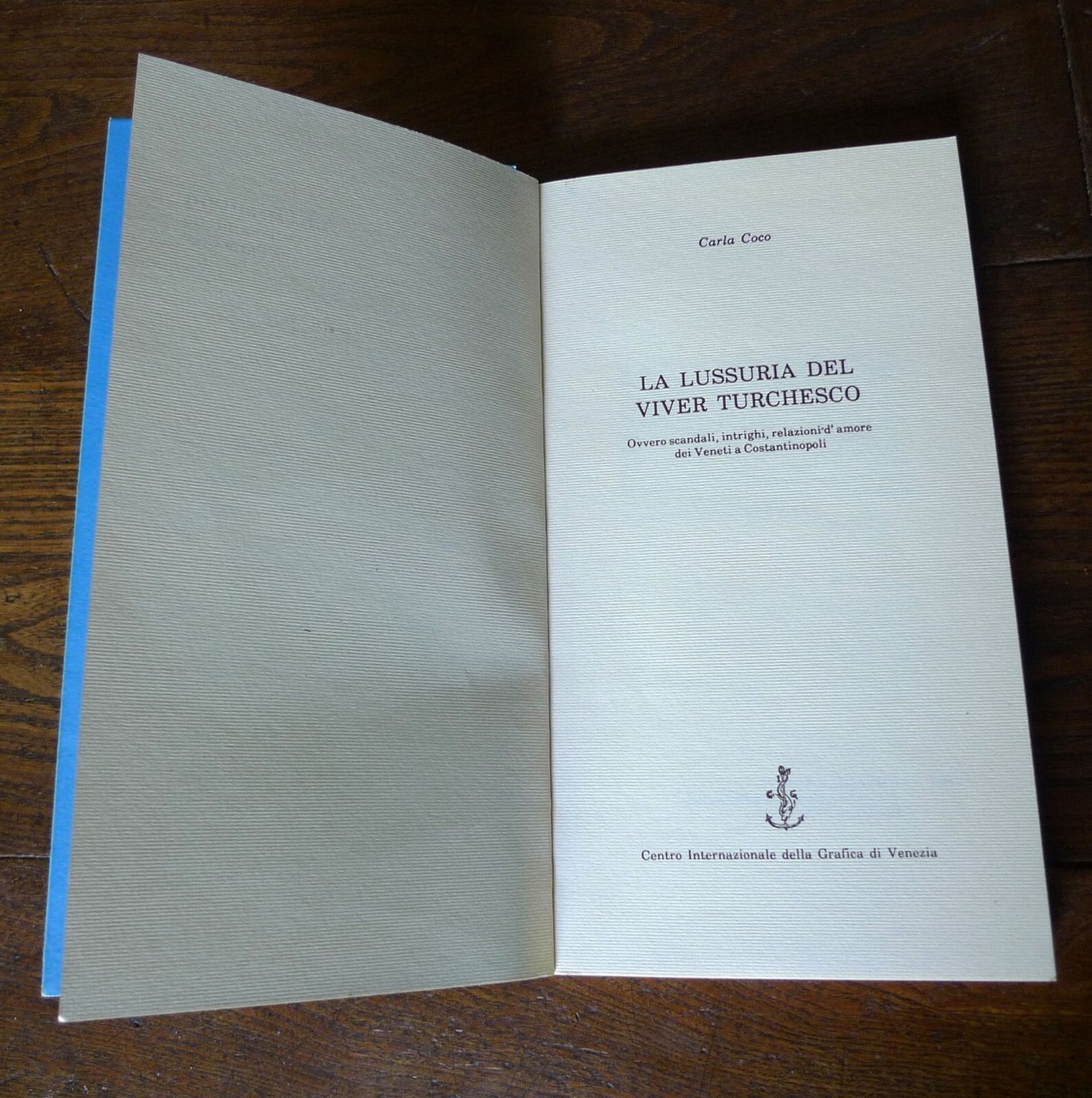 Carla Coco,LA LUSSURIA DEL VIVER TURCHESCO.Ovvero scandali, intrighi, relazioni d'amoredei Veneti a Costantinopoli.Centro Internazionale della Grafica di Venezia,Venezia 1990,tiratura di 600 esemplari,brossura con sovraccoperta, 22x12 cm., pp.77,illustrazioni in bianco e nero,AD ORIENTEM,collana diretta da Carla Coco,peso: g.350cod.9482CONDIZIONI DEL LIBRO: ottime,minime imperfezioni alla sovraccoperta,per il resto come nuovo