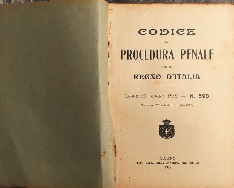 Codice di Procedura Penale per il Regno D'italia legge 20 del 1912