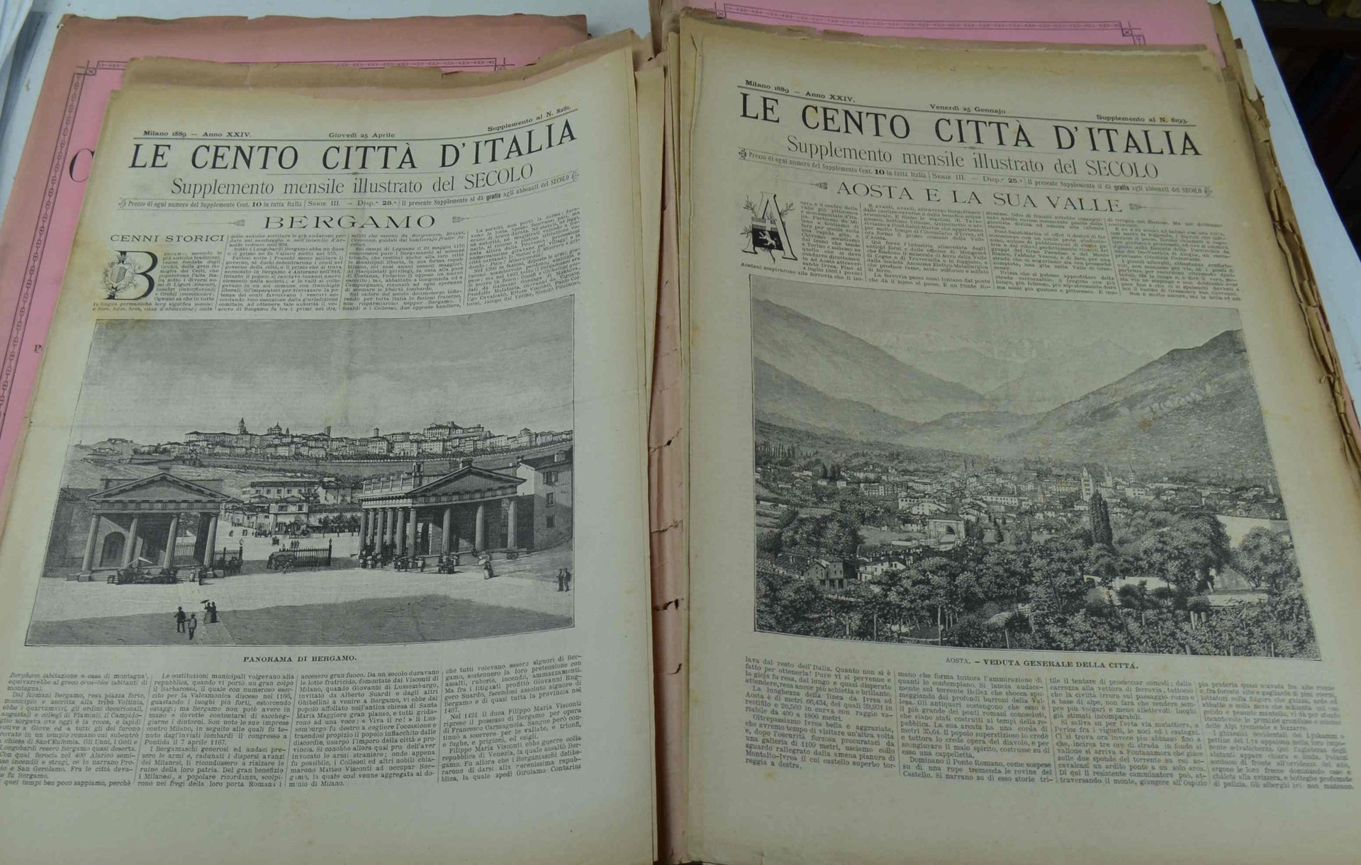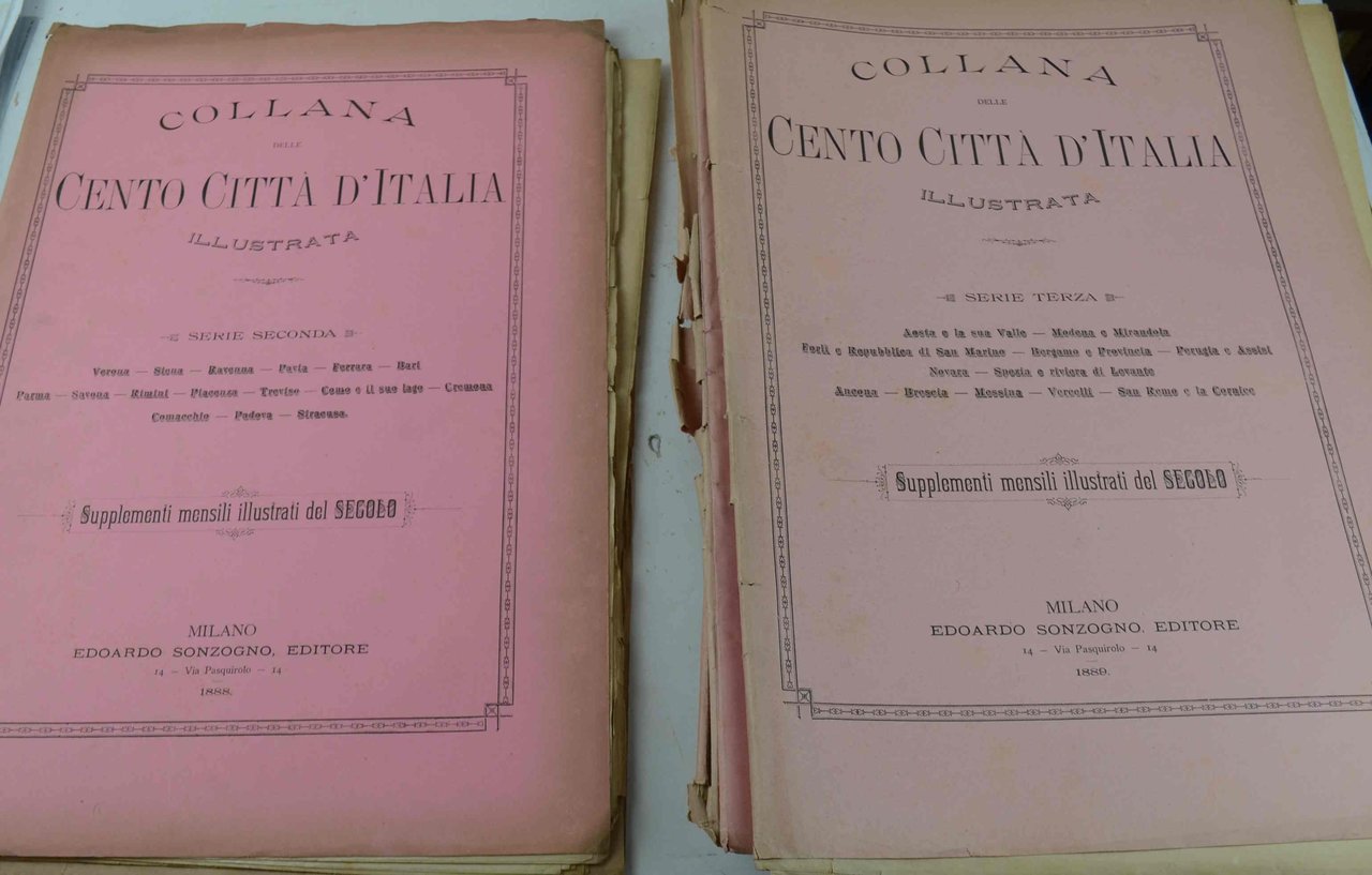 153 fascicoli di cm. 40, pp. 8 ciascuno. Con moltissime incisioni xilografiche. Esemplare genuino e ben conservato, preservato nelle brossure originali che racchiudevano le serie di dodici fascioli (salvo due). Sono presenti le seguenti serie complete (ciascuna con 12 fascicoli): prima, seconda, terza, quinta, sesta, settima, ottava, dodicesima, tredicesima, quattordicesima, quindicesima e sedicesima (quest'ultima di soli 9 fascicoli).