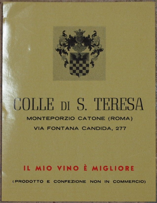 COLLE DI S. TERESA MONTEPORZIO CATONE (ROMA) VIA FONTANA CANDIDA 277 IL MIO VINO E MIGLIORE (PRODOTTO E CONFEZIONE NON IN COMMERCIO)