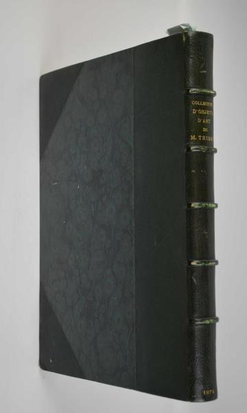 Cm. 35, pp. (4) xiii (1) 286 (2). Con ritratto di Thiers all'antiporta, eleganti testate, finalini e 33 belle tavole fuori testo incise all'acquaforte ed in cromolitografia. Solida ed elegante legatura coeva in mezzo marocchino verde a fascia larga e con ampie punte. Dorso a nervi con titoli in oro. Sguardie marmorizzate e taglio di testa dorato. Brossura orig. preservata all'interno. Solo qualche fioritura sparsa, peraltro esemplare fresco e marginoso, in ottimo stato si conservazione. Prestigioso catalogo che elenca ed illustra una gran quantità di oggetti d'arte, molti dei quali di proveniena giapponese e cinese. Prefazione di Charles Blanc.
