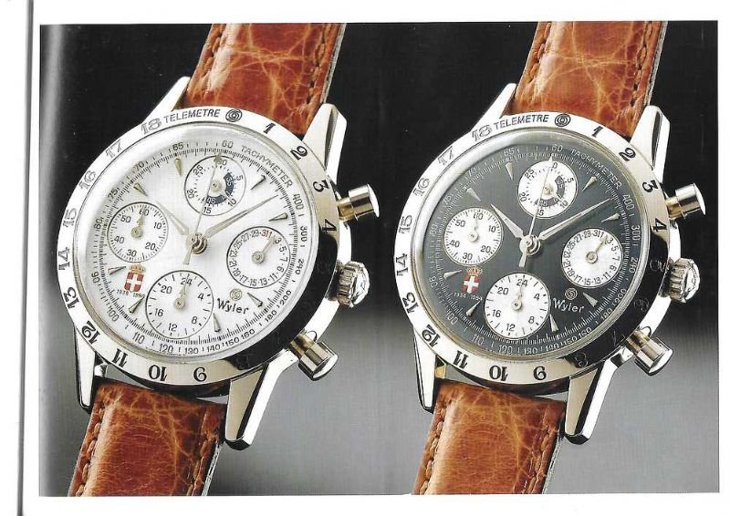 In-8° album. Catalogo commemorativo, legatura in brossura azzurra, pp. 12 con le foto dei cronografi a colori e le foto di parte della nazionale del '34, (Pozzo, Meazza, Monzeglio, Combi, Orsi, Cesarini), con relativi facsimili di autografi riguardanti l'elogio agli orologi Wyler.