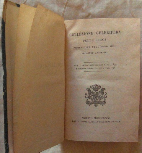 COLLEZIONE CELERIFERA DELLE LEGGI PUBBLICATE NELL'ANNO 1831 ED ALTRE ANTERIORI.