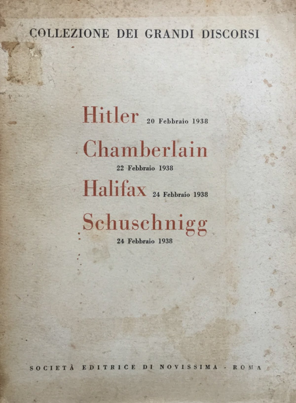 Collezione dei grandi discorsi. Hitler 20 febbraio 1938 - Chamberlain 22 febbraio 1938 - Halifax 24 febbraio 1938 - Schuschnigg 24 febbraio 1938