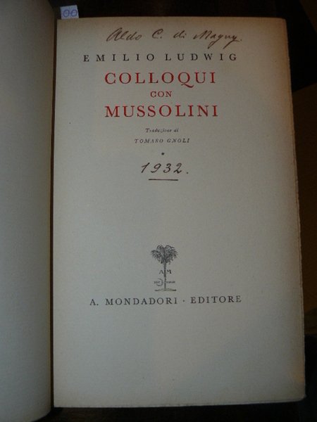 Colloqui con Mussolini. Traduzione di Tomaso Gnoli
