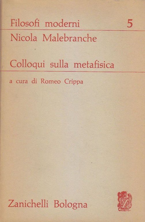 COLLOQUI SULLA METAFISICA di Nicola Malebranche 1963 Zanichelli libro filosofia
