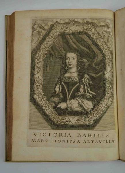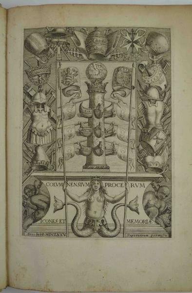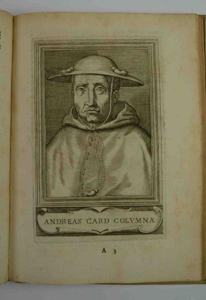 Cm. 26, antiporta figurata + cc. 96. Con molti ritratti incisi a piena pagina. Legatura ottocentesca in piena pergamena, dorso liscio con titoli e ricchi fregi in oro. Tagli dorati. Timbretto della biblioteca Colonna e grande ex libris nobiliare inglese. Rade arrossature, ben conservato. Celebre ed affascinante libro che ritrae i personaggi della famiglia Colonna. non comune.