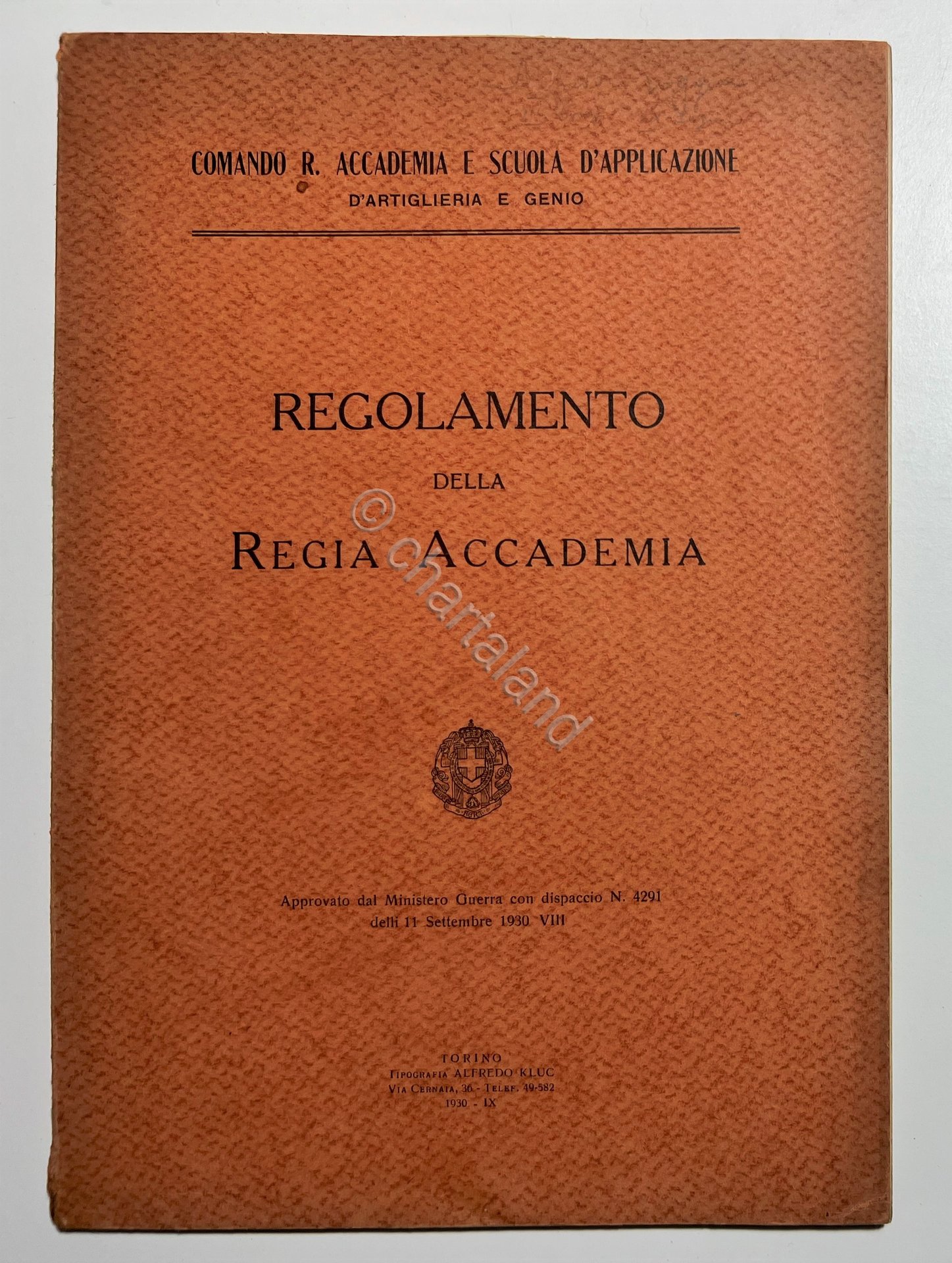 Comando R. Accademia e Scuole Applicazione - Regolamento della R. Accademia 1930