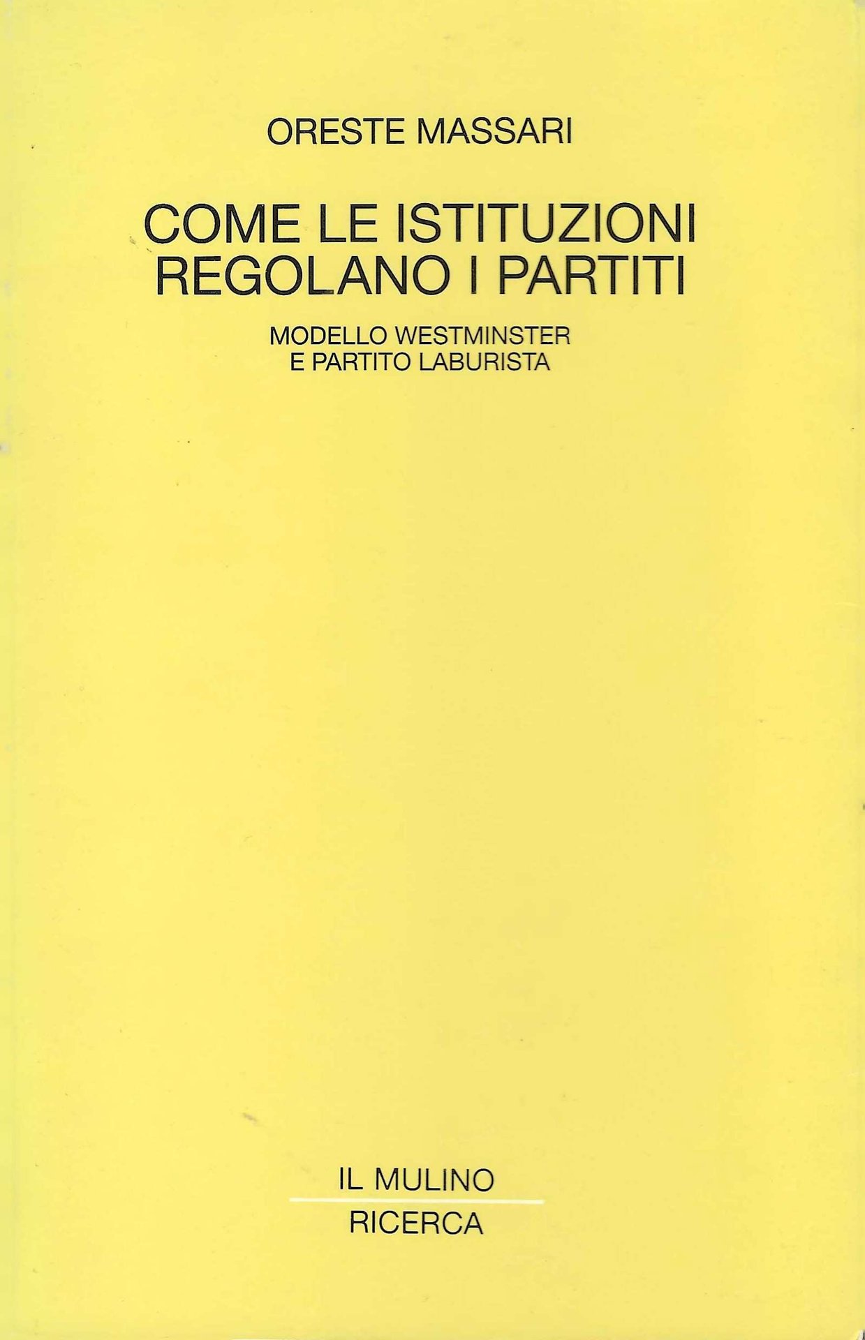Massari Oreste, Come le istituzioni regolano i partiti. Modello Westminster e partito laburista. Il Mulino Ricerca, 1995.In-8 (Cm 21,3x13,4), pp. 277, brossura editoriale con alette. Il Mulino Ricerca. Minimi segni del tempo, Ottimo.