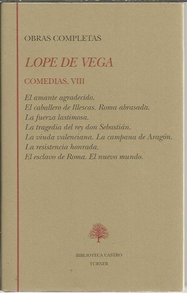 COMEDIAS, VIII. EL AMANTE AGRADECIDO. EL CABALLERO DE ILLESCAS. ROMA ABRASADA. LA FUERZA LASTIMOSA. LA TRAGEDIA DEL REY DON SEBASTIAN. LA VIUDA VALENCIANA. LA CAMPANA DE ARAGON. LA RESISTENCIA HONRADA. EL ESCLAVO DE ROMA. EL NUEVO MUNDO.