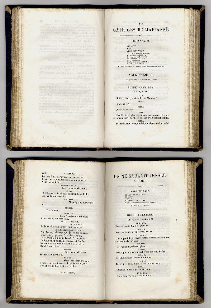 Paris, Charpentier, 1857, volumi 2, in-8, bella legatura coeva in mezza pelle blu, titolo e fregi in oro, sguardie marmorizzate, pp. (4), 454 - (4), 428. Ex-libris Caproni. Ottimo esemplare.
