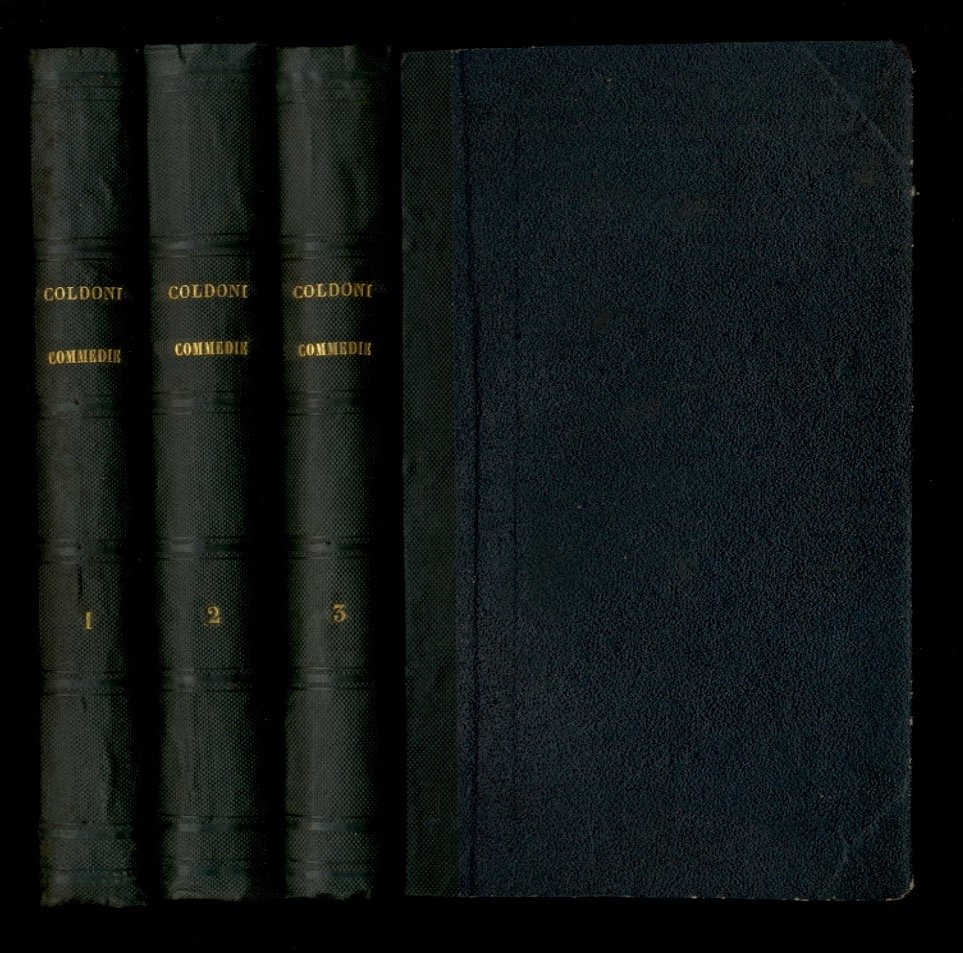 Milano, Società Tipografica de' Classici Italiani, 1821, volumi 3, in-8, mezza tela verde, titolo oro al dorso, pp. XL, 380, (2); 467, (5); 431, (5). In antiporta al volume 1° (che contiene anche la vita di Goldoni), bel ritratto inciso in rame in ovale da C. Rampoldi. Elegante edizione ad ampi margini, nitida ed in ottime condizioni. Pur mancando il 4° volume l'insieme risulta completo per argomento.