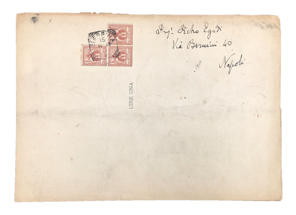 In-8° (cm. 24,5), pp. LXVI. Brossura editoriale allematta e priva del piatto anteriore. Al piatto posteriore 3 francobolli da 2 cent. timbrati e l'indirizzo di Pietro Egidi scritto di pugno da Gaetano Salvemini. SALVEMINI, grandissimo storico, deputato, militante antifascista, fondatore e direttore del settimanale L'Unità, docente. EGIDI (Viterbo 1872 - La Souche 1929), direttore della Rivista Storica Italiana, dal 1924 membro dell'Istituto storico italiano per il Medio Evo, autore di studi viterbesi. KIRNER (Friedenweiler 1868 - S. Orsola di Bologna 1905 ), a Livorno coi genitori orologiai, ottimo filologo, con Salvemini lottò strenuamente a livello nazionale per la dignità dell'insegnamento e una riforma della Scuola, tra mille difficoltà. Un anno dopo la sua scomparsa, mentre il Parlamento approvava lo stato giuridico ed economico degli insegnanti, un gruppo di amici raccolse e pubblicò il suddetto volume di Discorsi e scritti di G. Kirner.