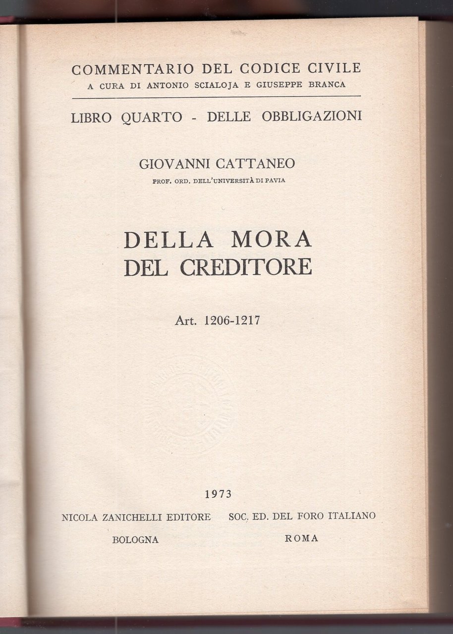 Commentario al Codice civile.Libro IV - delle obbligazioni .(art. 1206-1217 ) Mora del creditore