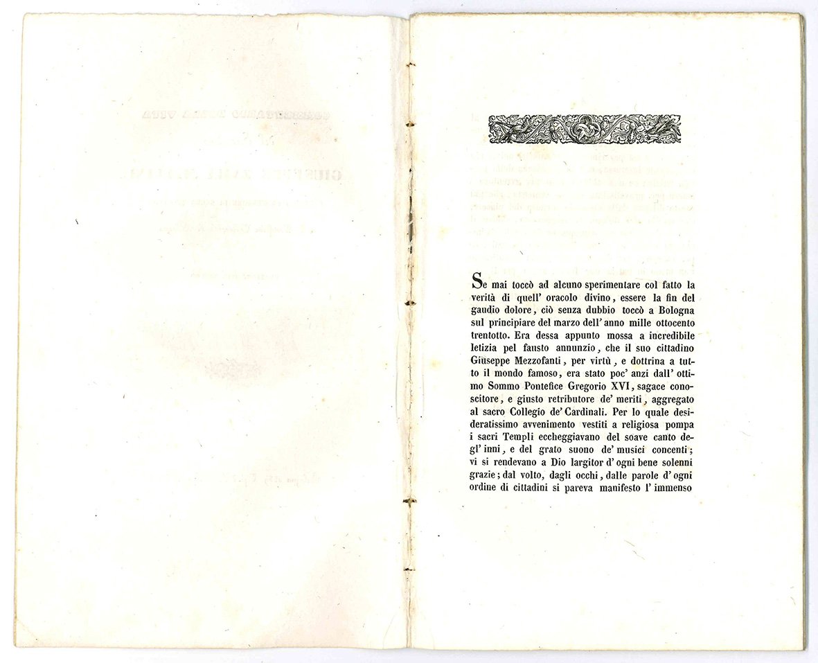 In 8vo (mm 214x132); pp.42, [10]. Ritratto di Zama Mellini in antiporta, piccolo fregio al frontespizio, frontalino. Ampi margini. Correzioni manoscritte alle pp. 29 e 37. Minime fioriture ad alcune carte. Non rilegato.